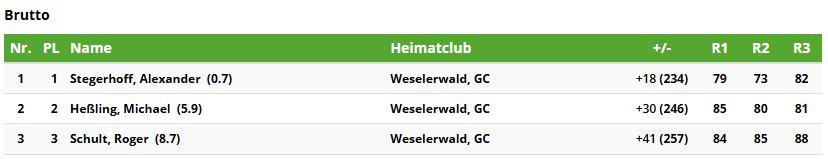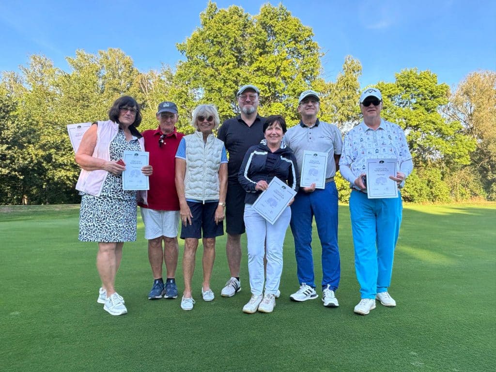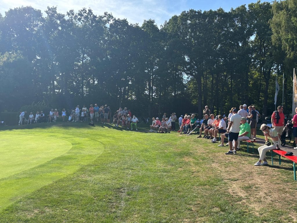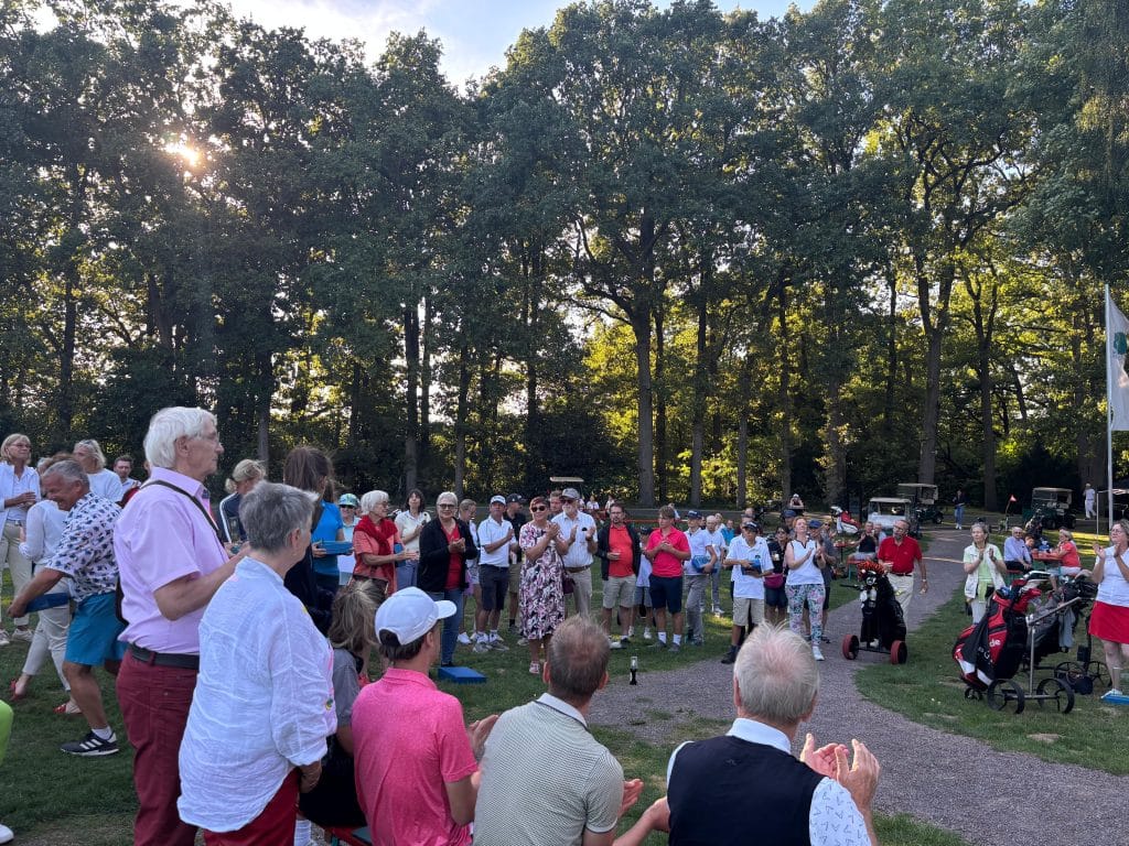 Wie im Vorjahr spielten die Herren zum Schluss und es wurde nach der Platzierung gestartet, so dass die Teilnehmer, die vor der Schlussrunde in Führung lagen zum Schluss eintrafen. Als die letzten Flights eintrafen standen knapp 100 Personen am Grün von Loch 18 und applaudierten den Spieler:innen.