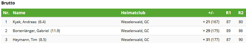 Der Monatspreis wurde in diesem Jahr über 9-Loch ausgespielt. Es wurde im Anschluss an die Clubmeisterschaften gestartet.