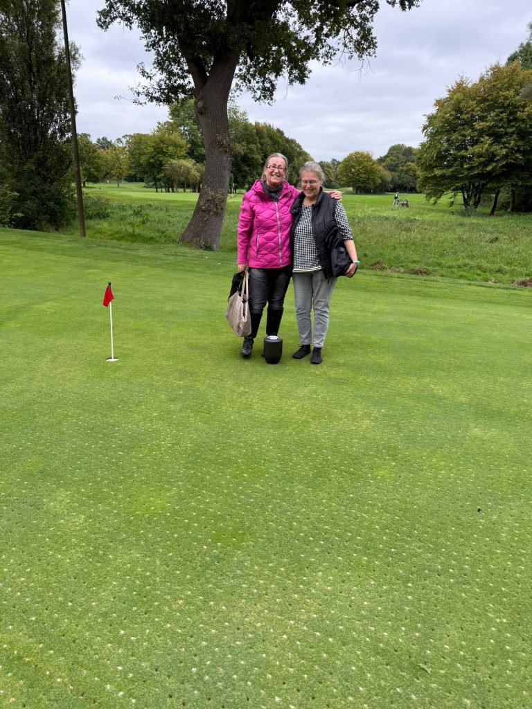 Nach Kaffee, Brötchen und Kuchen hatten Elke und Birgit Borchert den Wunsch das es auf einer Spielfläche des Golfplatzes zu einer kleinen Zeremonie kommt, dieserhalb hatten sie auch die Urne mit der Asche des Verstorbenen mitgebracht.