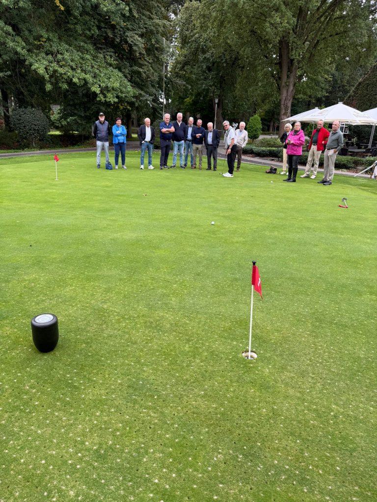 Die Urne wurde dann auf dem Putting-Grün aufgestellt und jeder der Anwesenden, vollzog einen Putt auf ein Loch in der Nähe der Urne.
